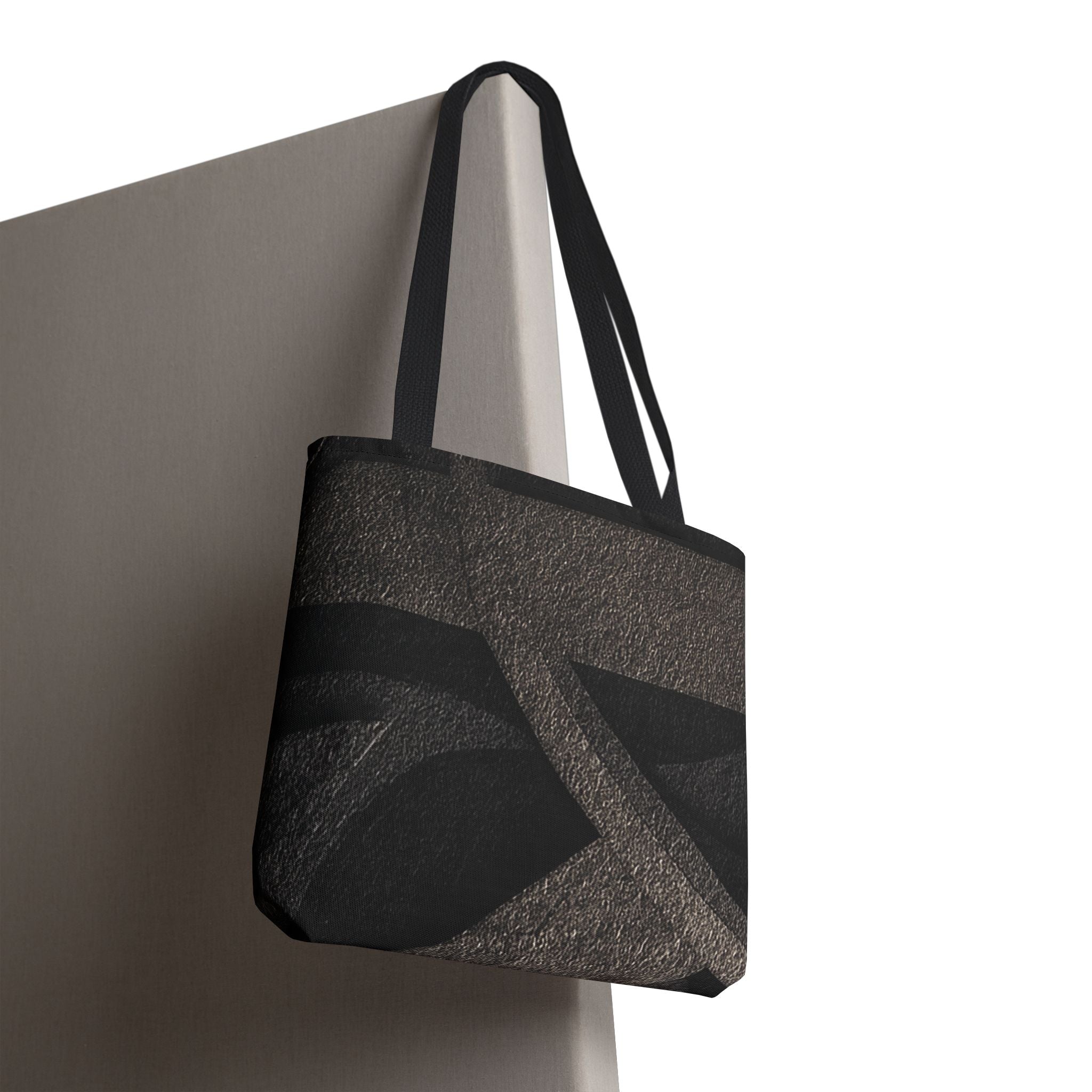 Abstracted symbol repetition creates rhythm across the surface, recognizable without being explicit. The pattern feels textile-like—measured, balanced, and modern—allowing the tote to function as both utility and quiet signal.