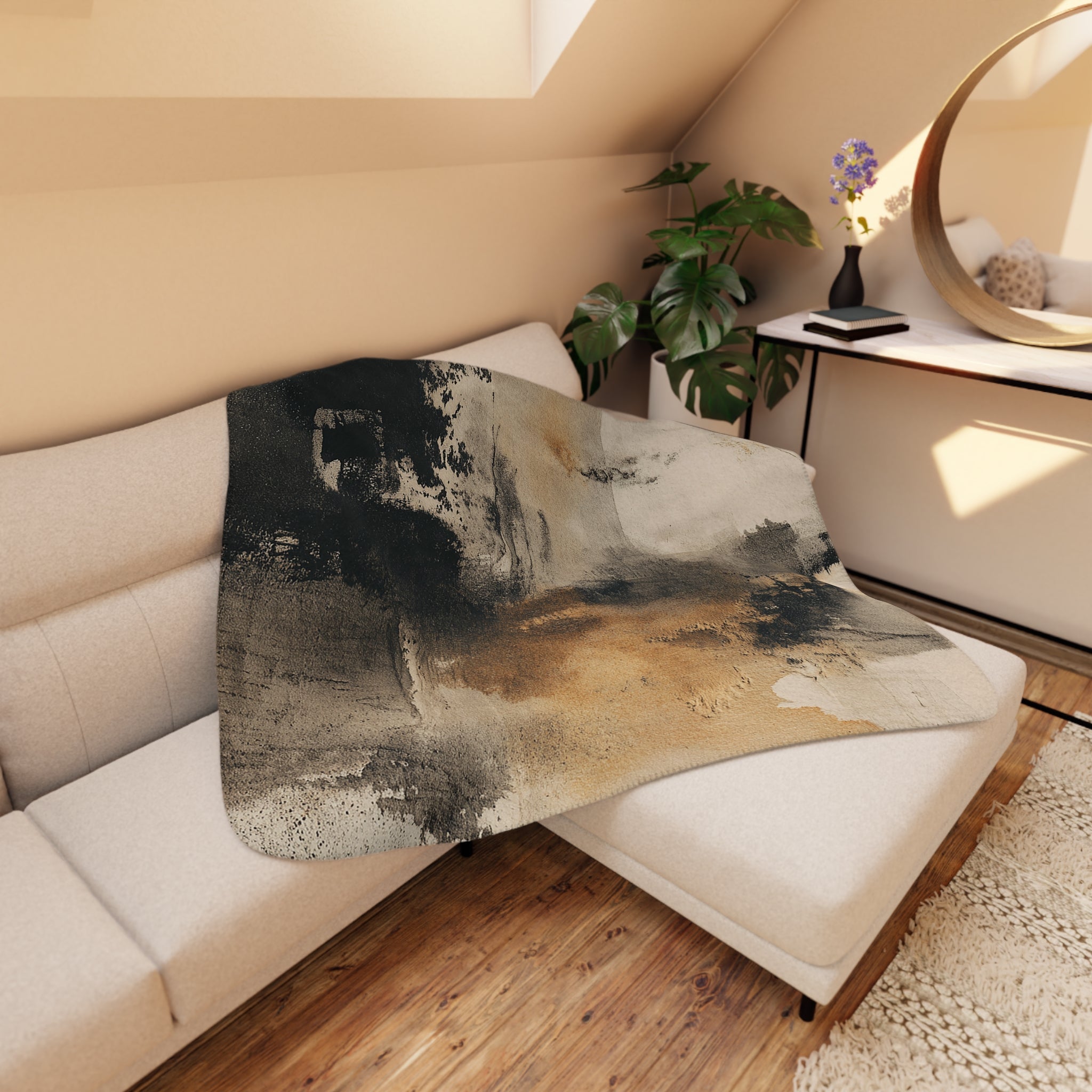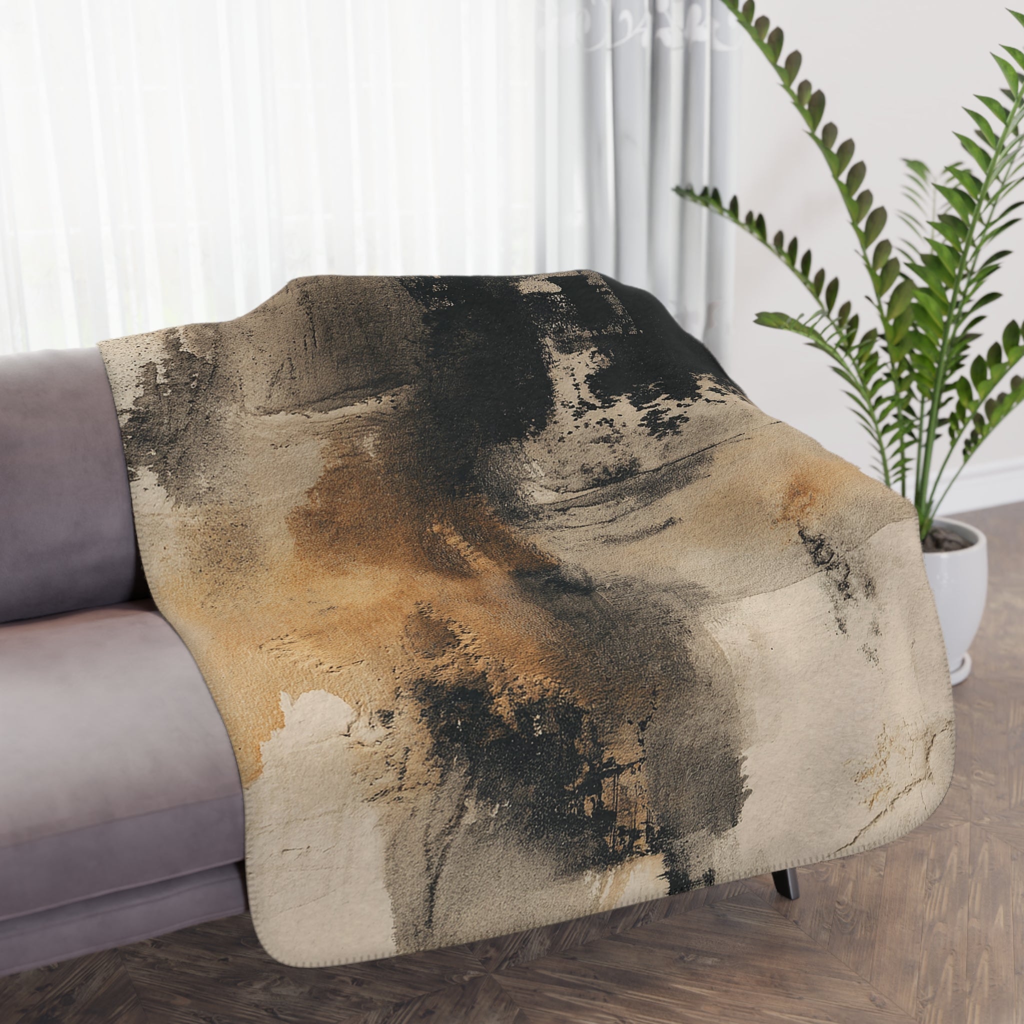 Wrap yourself in a quiet, cozy warmth that feels like an evening by the fire. This Studio Abstract Collection Sherpa Blanket layers a painterly, earthy print on one side with pillowy tan sherpa on the back. It soaks up cold drafts and adds an instant sense of calm to a living room, reading nook, or bedside. The muted ochres, charcoal washes, and soft neutrals blend with wood tones and linen — it’s the kind of throw you reach for during slow mornings, late-night movies, or when you want to feel grounded after a long day. Lightweight to move, heavy on comfort, it wears like a familiar companion through seasons and small rituals.